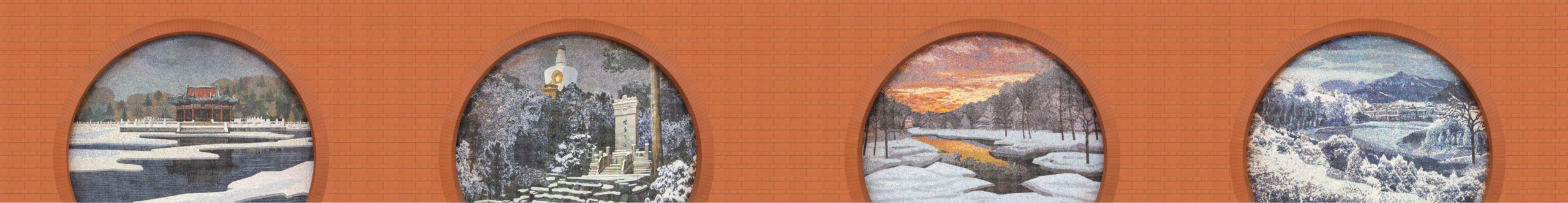 燕京八景有很多种版本,流传最广的是清乾隆十六年(1751年)御定的八景太液秋风、琼岛春阴、金台夕照、蓟门烟树、西山晴雪、玉泉趵突、卢沟晓月居庸叠翠。实际上燕京八景的每一处景致,都有一段历史典故、传说,让人们从不同的角度去观察、欣赏、赞颂秀美的北京古都风貌。最美莫过于银装素裹的冬天,雪花漫天飞舞。作品描绘的是北京八景的冬日雪景,展示了传统园林的美,让人们从不同的角度去观察、欣赏、赞颂秀美的古都风貌。