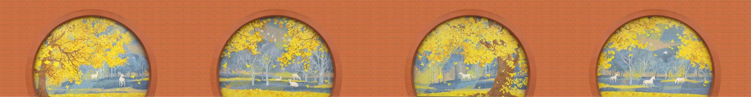 碧空如洗,金色的银杏在清风中翩翩起舞,远处白色的鹿与马悠闲的享受秋日暖阳,正是北京最动人的一抹秋色。画面延展了地铁的封闭空间,为忙碌的行人送去一份娴雅。