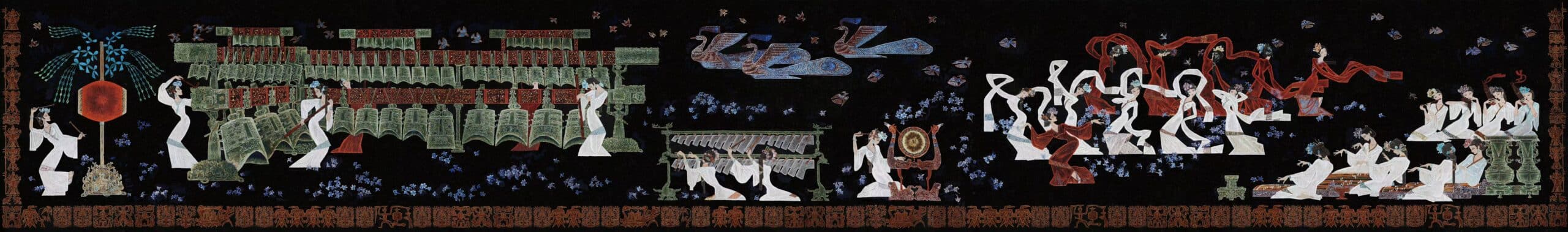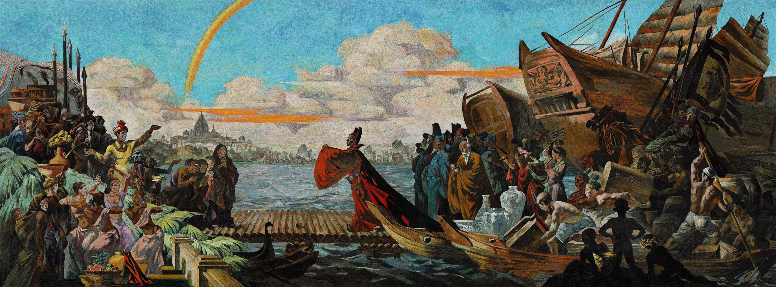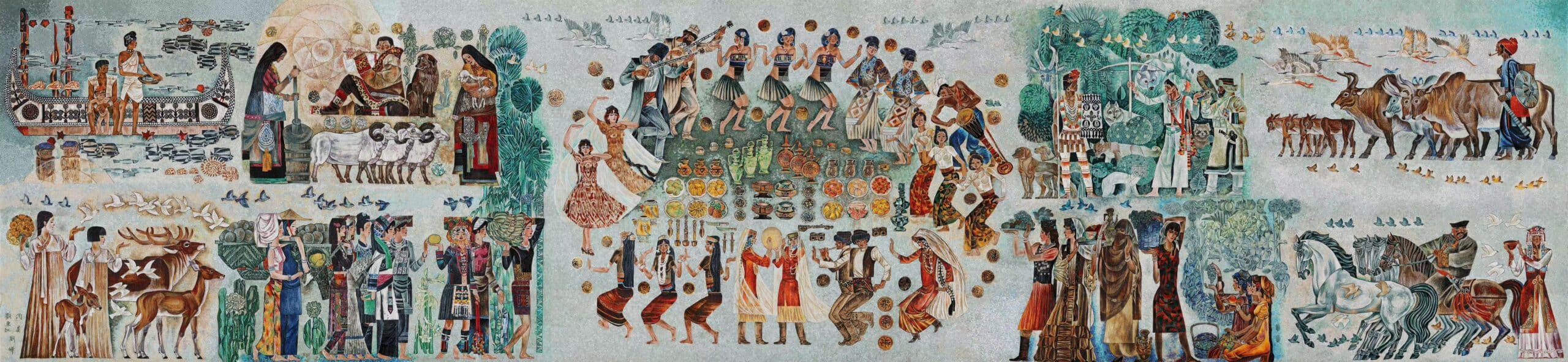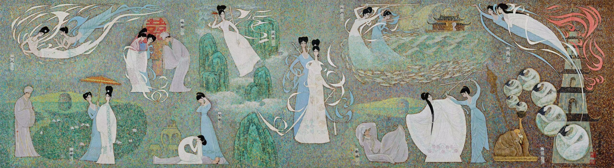 此次上墙的17幅壁画作品,由中央美术学院担任艺术主创,由中央美术学院院长、中国美术家协会主席范迪安先生指导,邀请全国多位壁画艺术家共同创作出来。其中,《百花齐放》《山河颂》《泼水节》《巴山蜀水》《创造、收获、欢乐》5幅是中国改革开放后创作的现代经典壁画。《山河颂》是王文彬先生用3年时间走遍祖国大江南北之后创作的。《黄河大合唱》是中国著名油画大家詹建俊与叶南在2009年参加国家重点文化工程——“重大历史题材美术创作工程”时所创作的巨幅油画,现收藏在中国美术馆。《老河街》《常德会战》《巾帼群芳》《德山书院》这4幅作品是纯粹的常德题材。《常德会战》由中央美术学院教授孙韬所作。为了创作这幅史诗般的壁画,他多次到常德考察旧战场、旧战壕、旧碉堡,悉心揣摩;《老河街》由中央美术学院教授杜飞创作。为了展现常德河街的独特风貌,杜飞在全程游览了大小河街和麻阳街后,又沿常德诗墙近距离观察了“常德河街”原址。
