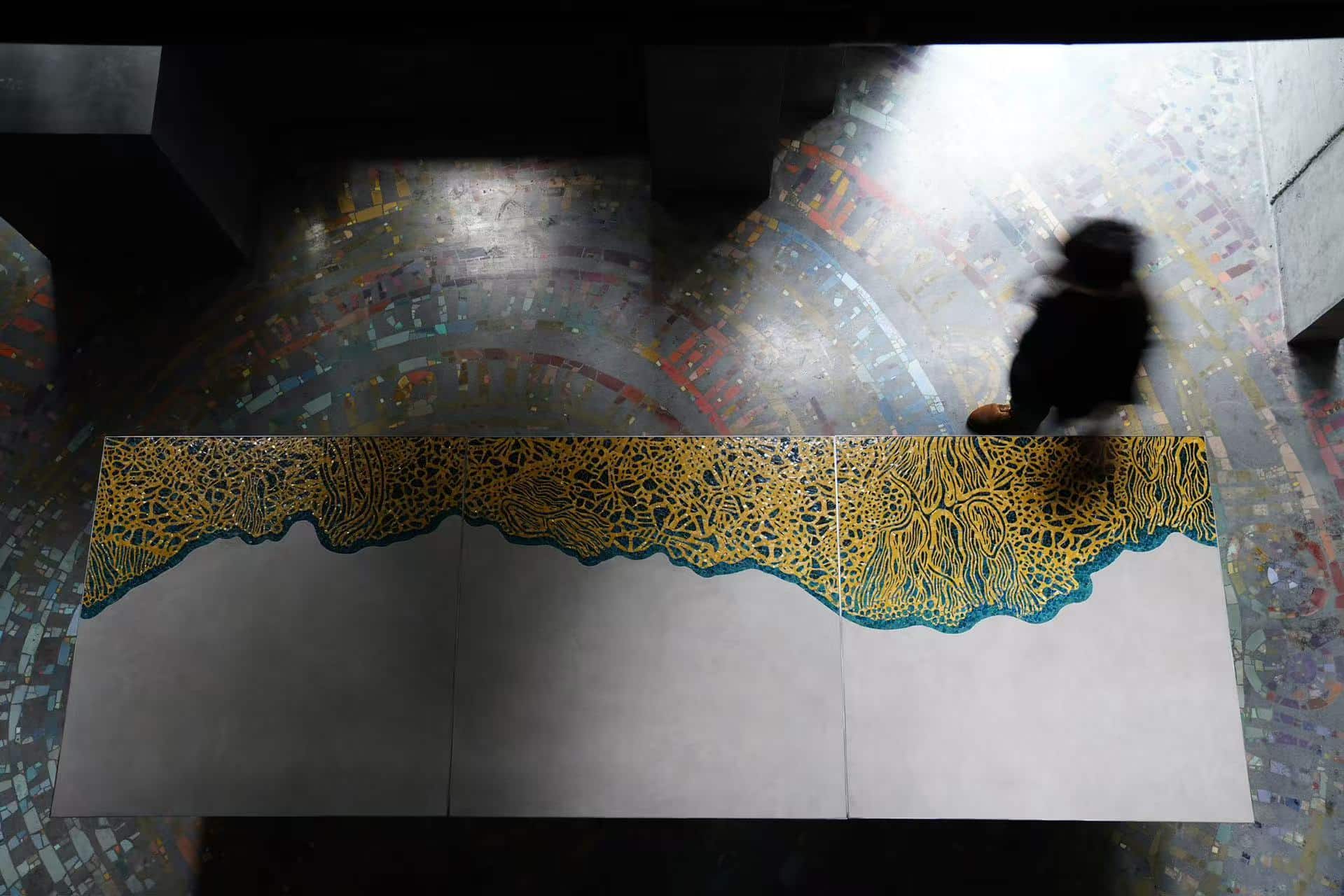 这组镶嵌定制桌以自然为灵感,将金属、马赛克与木质材料融合于同一设计体系之中。桌面纹理或如金色脉络自由生长,或似水流回环铺展,线条在理性结构中保留自然的随机与生命感。 所有图案均由手工切割与镶嵌完成,不同材质在光影变化下呈现出细腻而克制的层次,使桌面本身成为可被使用的艺术载体。 作品兼具功能性与观赏性,既服务于空间使用,也成为环境中的视觉焦点。